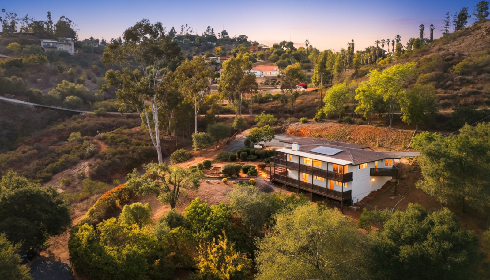 After an activity filled day, unwind on the deck or by the fireplace as the sun paints Southern California skies with bursts of rose, gold and orange. Surrounded by nearly 1.5 acres of private land, this residence offers you the chance to explore your passion of outdoor living, nurturing mature fruit trees, planting gardens, tending to animals or enjoying your own outdoor oasis as you entertain family and friends.